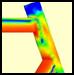 | Cosmos Works gir en grafisk fremstilling av spenninger, forflytning eller sikkerhetsfaktor. Det er opptil konstruktøren å studere det han vil. Bildet under viser den grafiske fremstillingen av beregningene. | ||||||||||||||