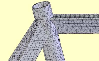 Modellen som ble tegnet i Solid Works tas over i Cosmos Works. Her defineres