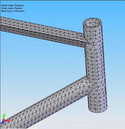 | Vi benytter elementmetoden for å kunne optimalisere rammen, både når det gjelder vekt og stivhet. Men hva går nå denne elementmetoden ut på? Som navnet sier, så deler konstruksjonen opp i mange små elementer. Dermed kan man beregne spenningen i hvert enkelt element. | ||