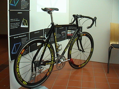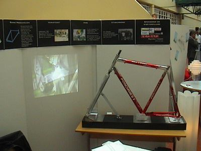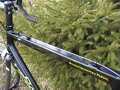 | Endelig! Nå kan vi presentere resultatet for dere! Etter utallige timer med jobbing med beregninger, testforsøk, tegning, design, jiggbygging, rørtilpassing og sveising kan endelig produktet vårt lanseres. Rammen ble først lansert under NM i studentbedrift på Høgskolen i Vestfold til applaus. Håper dere liker sykkelen like godt som de gjorde under NM da vi sto på stand. Her kommer bildene! | ||||