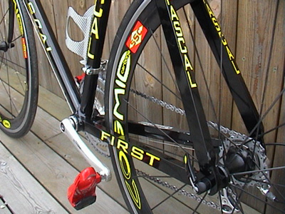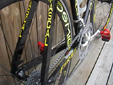 | Her er vår Pascal bygd opp med Mavic Cosmic Carbone hujul og Shimano Ultegra. Det er viktig for oss at ting står i stil til hverandre, derfor er rammen vår levert sort med gul skrift akkurat som det er på hjulene. Modellen har fått navnet "First", siden dette er vår første ramme! | ||||